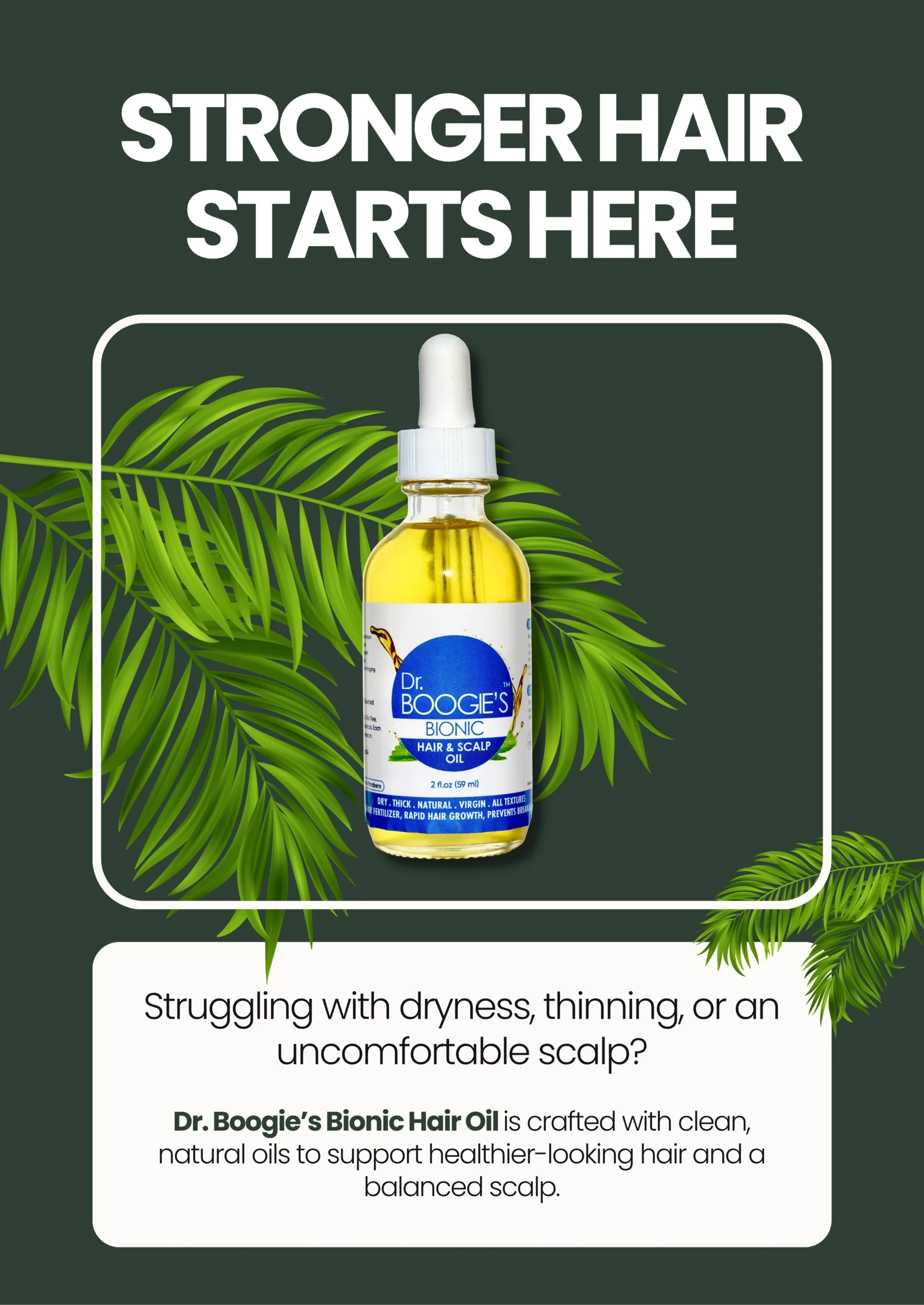stay balanced and healthy. Dr. Boogie developed his Bionic Hair and Scalp Oil over two